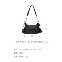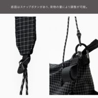 ショルダーストラップで肩掛けすること、ベルクロを使いBUGGYのハンドル部分にぶら下げることが出来ます。(実測容量 7L)
