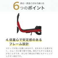 遊びながらバランス感覚を養い、ブレーキやスタンドで安全運転のルールやマナーをカラダで習得します。
