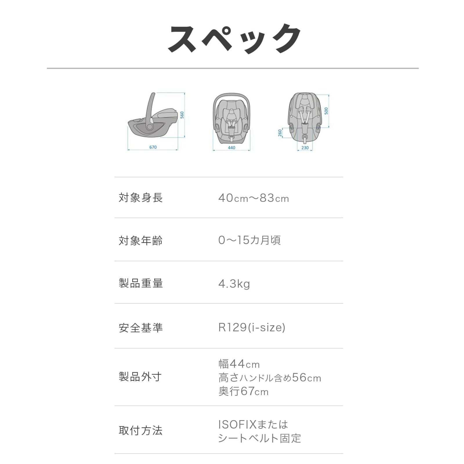【新生児~15ヶ月頃】R129適合