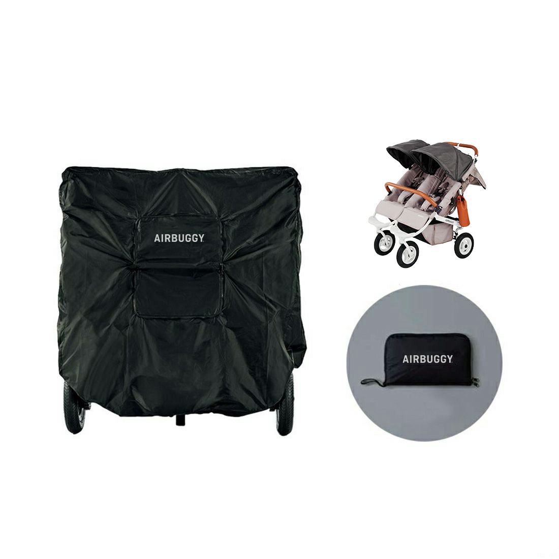 撥水加工されたナイロン生地で、雨やほこり、汚れから守ります。未使用時は、エアバギーの背面ポケットに収納することができます。
