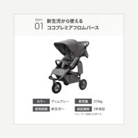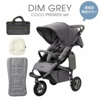 新生児から使えるエアバギーココプレミアフロムバースのディムグレーと、ベビーカーまくら、ベビーカーマット、ベビーカーバッグがセットになった【直営オンラインストア限定】のセットです。