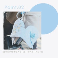 カラビナ付きなので、ベビーカーやバッグに付けてどこへでもお供します。