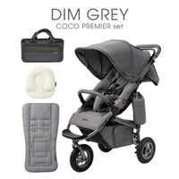 新生児から使えるエアバギーココプレミアフロムバースのディムグレーと、ベビーカーまくら、ベビーカーマット、ベビーカーバッグがセットになった【直営オンラインストア限定】のセットです。