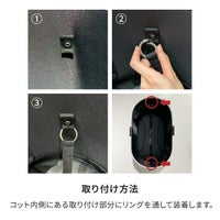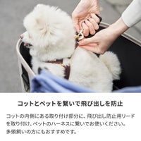 コットの内側に付いているリングに、飛び出し防止用リードを取り付け、わんちゃんのハーネスと繋いでお使いください。