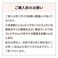 ご決済前にショッピングカートに入っている商品のサイズ確認および、商品ページでのコットやリュックのサイズ確認をお願いいたします。