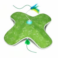 シートの中で見え隠れし、くるくる回る猫じゃらしの、予測できない動きで猫の好奇心を刺激します。