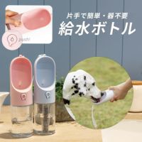 片手でボタンを押して給水が可能なペット用給水ボトルです。受け口がついているので、器もいりません。余った水はボトルに戻すことも可能です。