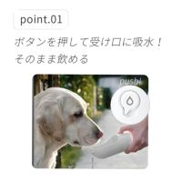 片手でボタンを押して給水が可能なペット用給水ボトルです。受け口がついているので、器もいりません。余った水はボトルに戻すことも可能です。