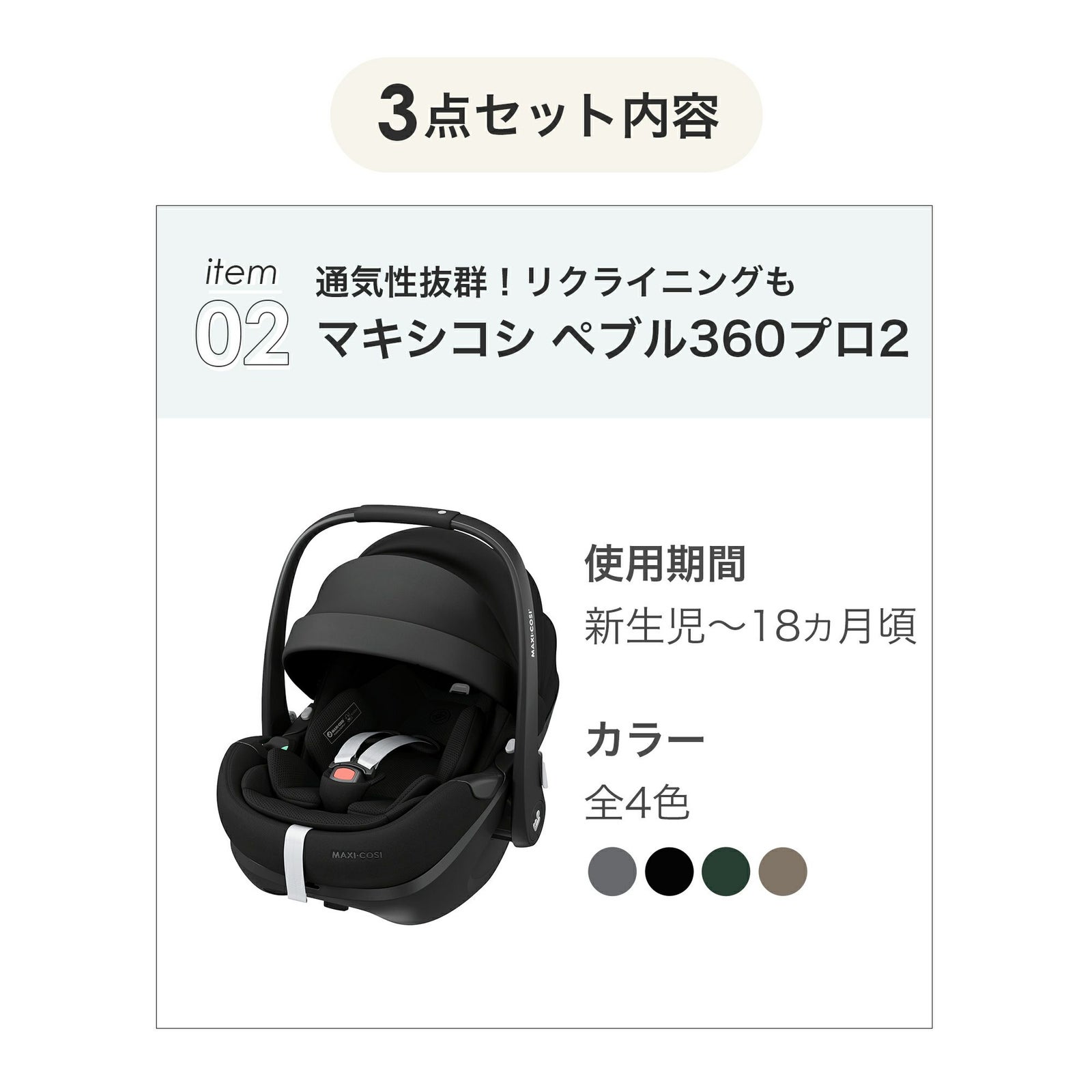 他の画像を見る お気に入りに登録する お得セット 【新生児~18ヶ月頃】スライド・360度回転 マキシコシ ペブル360 PRO2 + ファミリーフィックス360プロ 2点セット ¥ 74,800 税込