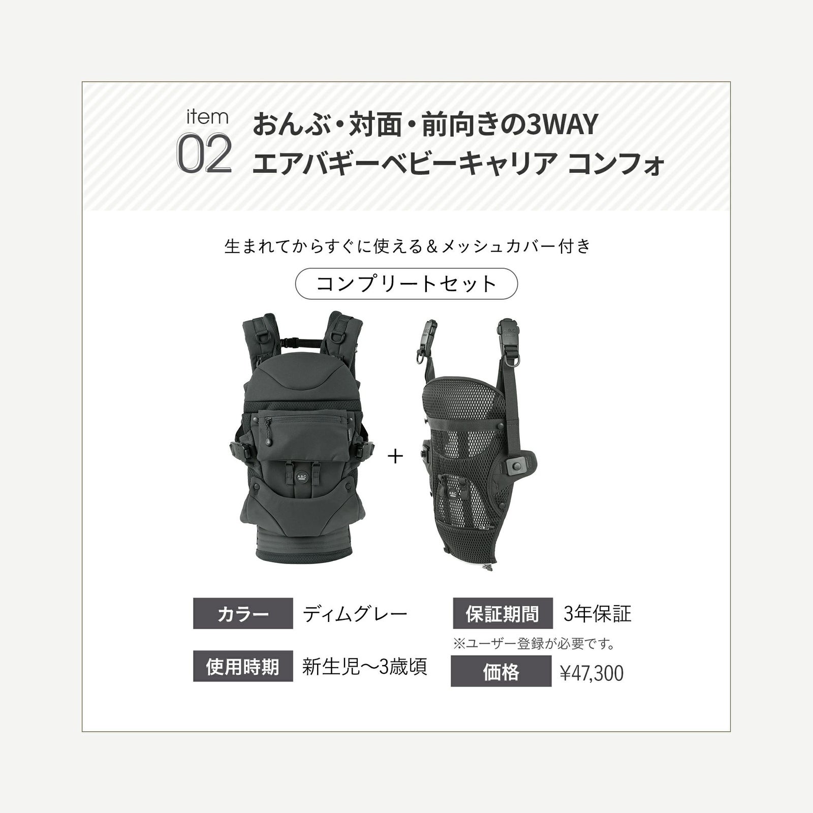他の画像を見る お気に入りに登録する BABY お得セット 直営店限定お得なセット! エアバギー ベビーキャリア コンフォ [スターターキット] 通常価格 ¥ 53,020 のところ ¥ 49,000 税込